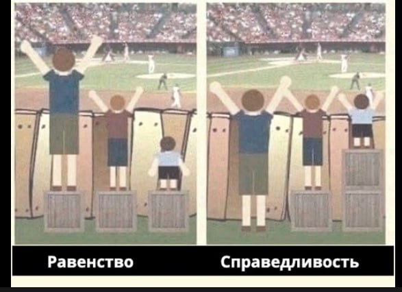 There is a well-known meme illustrating the phenomena of "justice" and "equality" easily understood situations in the physical world: