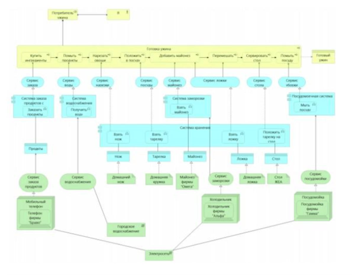 If you do not use this language in your work, you will not understand anything. The author of the description probably did not expect it to be read by a non-professional, or even by a professional who does not share the same modeling style, so no legend was provided for this description (those who model in this language know the conventional symbols of ArchiMate, and the recipient of the description understands its modeling style).