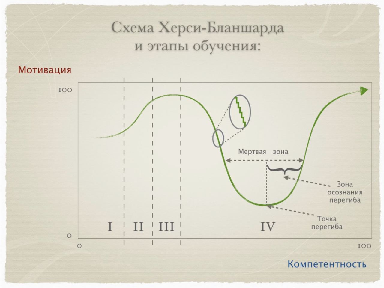 Then comes the third stage, when the student notes the first major breakthrough thanks to learning. At this moment, the initial practices are already mastered and performed confidently, a broad outlook has appeared. It seems that everything is clear, everything will be easy and fast to learn. However, as they continue to learn, they gradually begin to understand that there is still a lot under the surface, and to become a good specialist, a true master, one needs to learn much longer. At this point, at stage 4, the learner enters a "dead zone": they literally "go blind", the focus of attention no longer captures the growth of skills - because now, unlike the early stages, it grows slower. The student feels like nothing is changing (since progression was happening in leaps), they are not making progress. It is at this point that learners often "drop out": deciding to try their luck elsewhere. Learning English? Let's go learn German or Chinese. Studied 3D modeling? Let's try dancing, it might work better there.