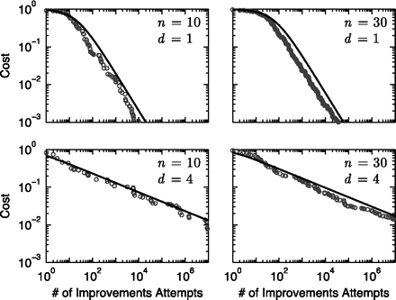 Here are the graphs of computer simulation illustrating the dependency of development cost reduction on the improvement of n individual modules, with d connections each[1]: