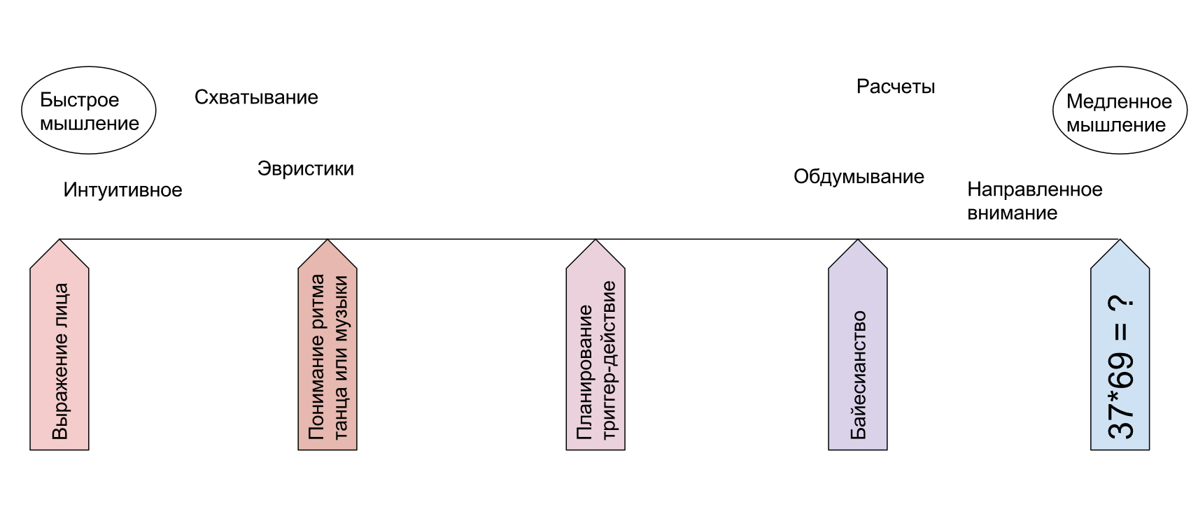 Modern machine learning and artificial intelligence systems use principles similar to the functioning of the human brain. Today, knowledge is understood not only as formal/strict mathematical models. Combining formal, "scientific" knowledge work methods with "informal" intuitive methods in neural networks (artificial or natural - it doesn't matter for the human brain) represents a scientific and technical frontier, which we will not touch upon in our course. In any case, we can greatly reduce errors in informal probabilistic reasoning by simply giving more time for calculations. This is currently a hot topic in research on large language models - can we seek an answer to a slightly modified question several times to get a more reliable and error-free answer? Yes, we can![1].