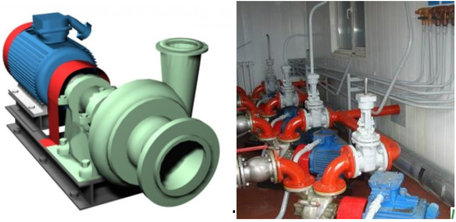 Some systems in the immediate surroundings: motor, frame (they are part of the pump unit as suprasystems, but they are external to the pump), part of the pumping station, but not the pump unit, include electrical wiring, pipes.